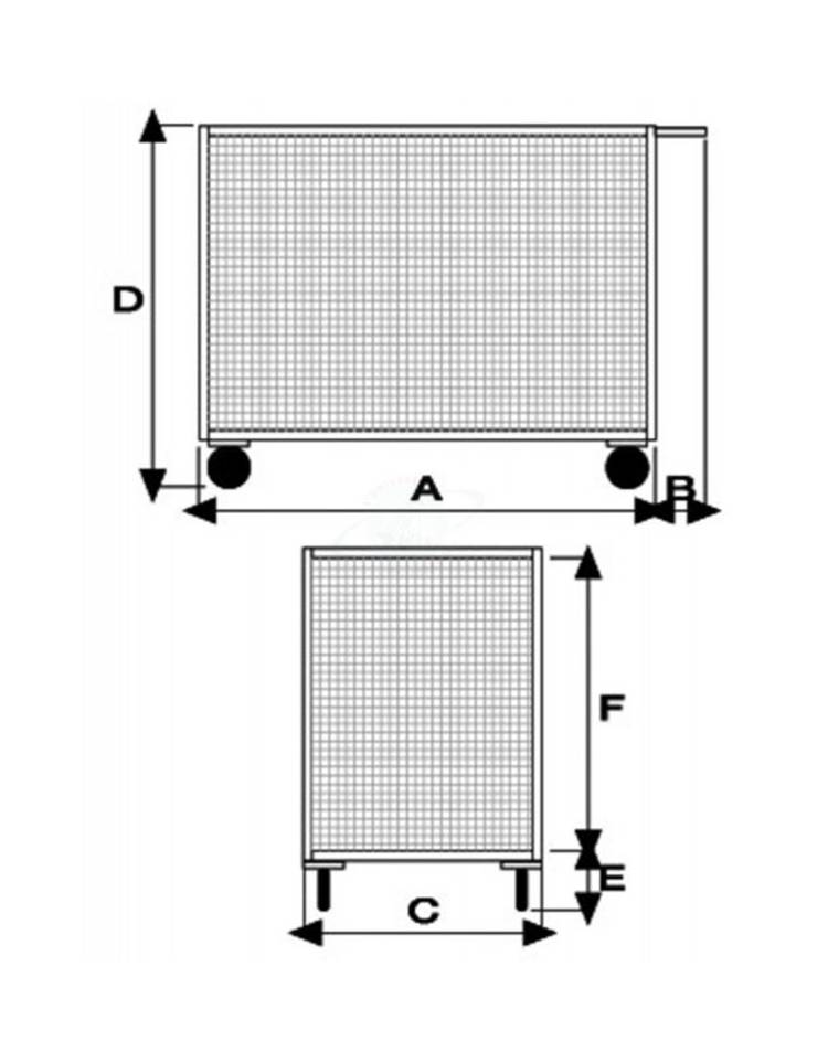 Carrello con pianale a 4 sponde in rete, 1 sfilabile - 2 ruote fisse e 2 girevoli con freno in gomma piena cm Ø14 - cm 60x90x81h