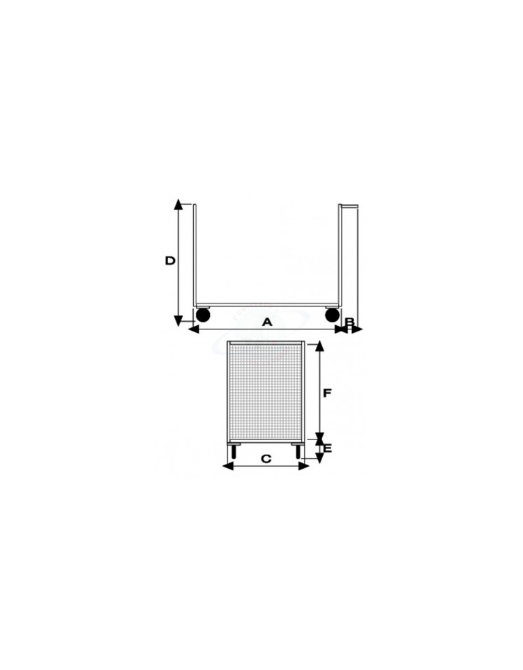 Carrello con pianale con 2 sponde in rete - 4 ruote Ø cm 14 ( 2 fisse - 2 girevoli ) gomma industriale - cm 60x90x81h
