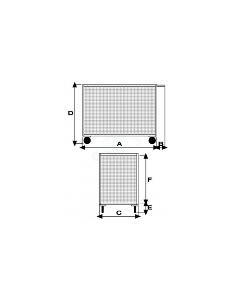 Carrello con pianale in acciaio inox a 4 sponde in rete - 4 ruote Ø cm 14 antitraccia girevoli - cm 60x105x81h