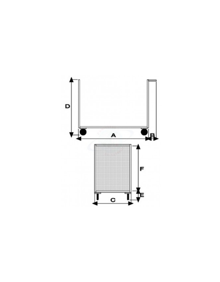 Carrello con pianale in acciaio inox AISI 304, 2 sponde in rete - 4 ruote cm Ø14 (2 fisse-2 girevoli con freno) - cm 60x105x81h