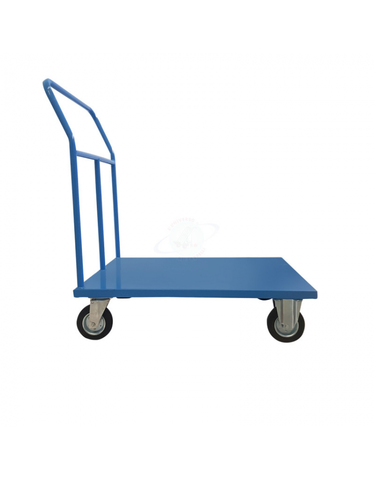 Carrello con pianale in lamiera 20/10 - 4 ruote (2 fisse-2 girevoli) in gomma piena Ø cm 14 - piano cm 60x90
