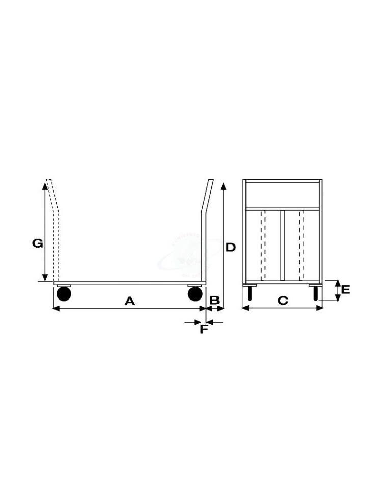 Carrello con pianale in lamiera 20/10 - 4 ruote antiforatura - ( 2 fisse - 2 girevoli) Ø cm 26 - piano cm 80x120