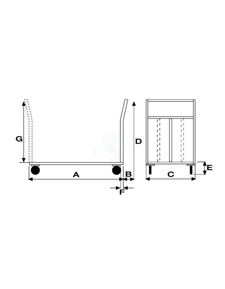 Carrello con pianale in lamiera 20/10, doppia sponda - 4 ruote girevoli cm Ø20 gomma industriale, 2 con freno - piano cm 80x120