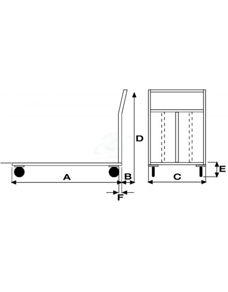 Carrello con pianale lamiera 20/10, alta manovrabilità - 4 ruote (2 fisse-2 girevoli con freno) gomma piena - piano cm 70x100