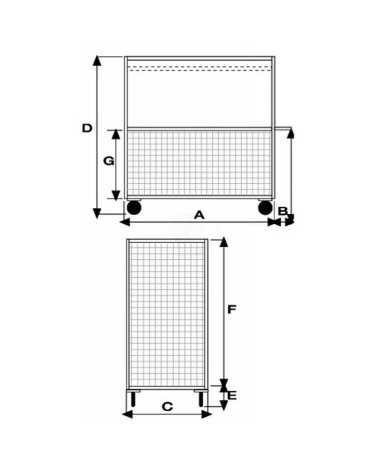 Carrello con pianale verniciato a 4 sponde, 1 ribaltabile - 4 ruote Ø cm 26 girevoli pneumatiche - cm 75x115x132h