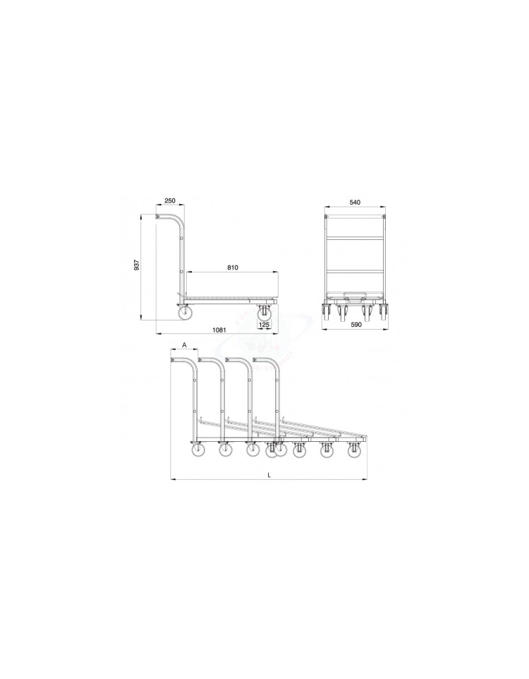 Carrello con Pianetta Brico piano in rete - Salvaspazio - 4 ruote Ø mm 125 - cm 59x108,1x93,7h - Imbottigliamento cm 26
