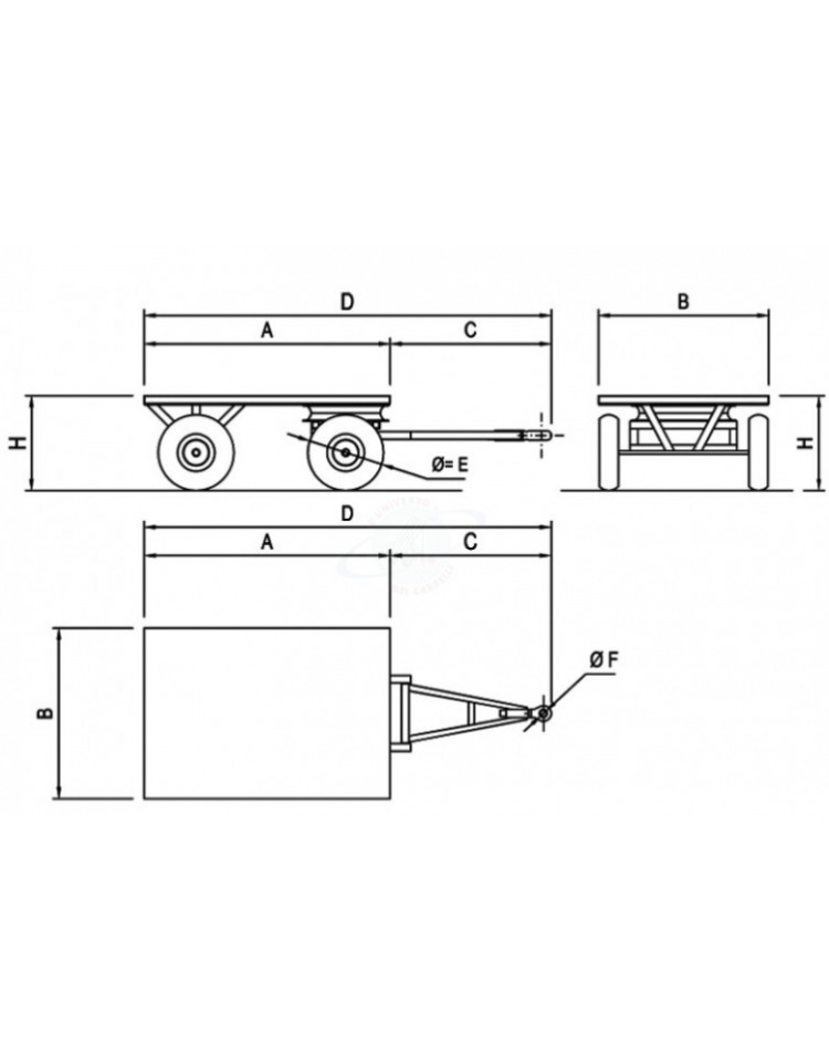 Carrello con rimorchio con ralla sterzante con semiasse - 4 ruote Ø cm 40x10 pneumatiche - cm 140x75x50h