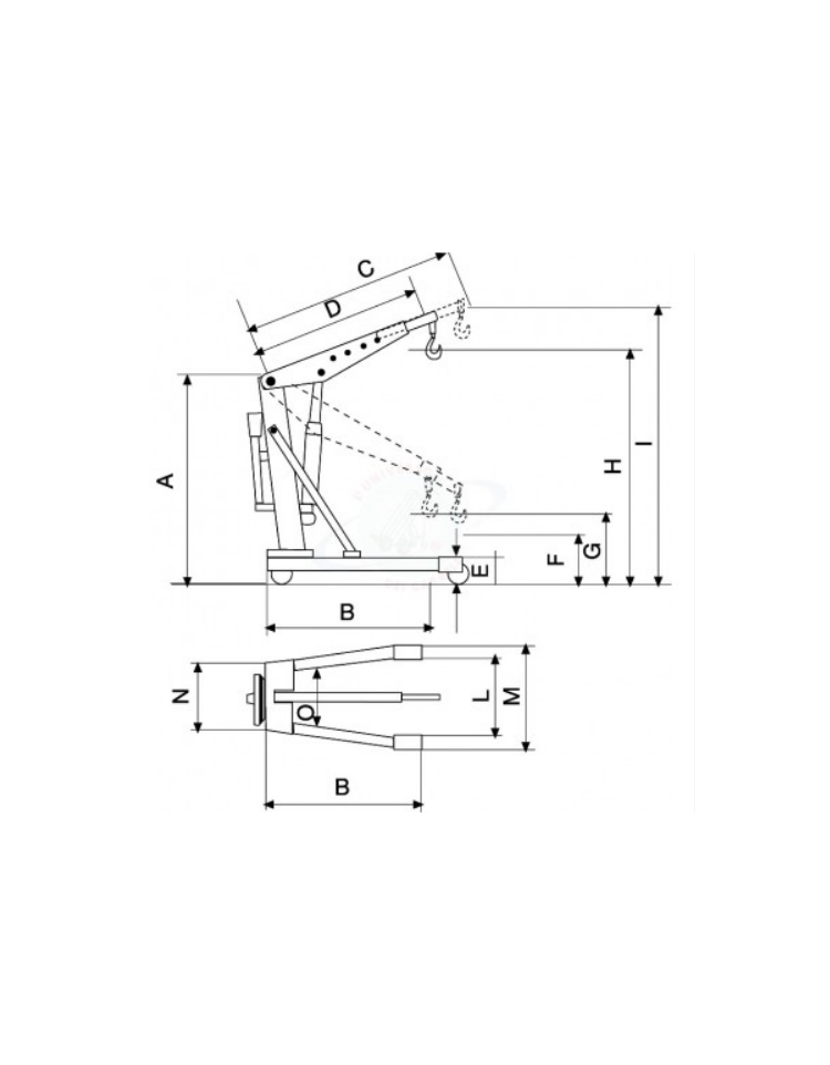 Carrello gru idraulica smontabile con pompa doppio effetto - portata kg 1500 - braccio sfilabile in 4 posizioni