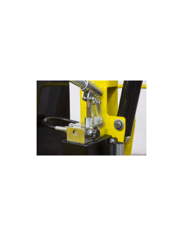 Il sollevamento del braccio avviene azionando (con manico in dotazione) una pompa a mano a doppio effetto estremamente leggera.