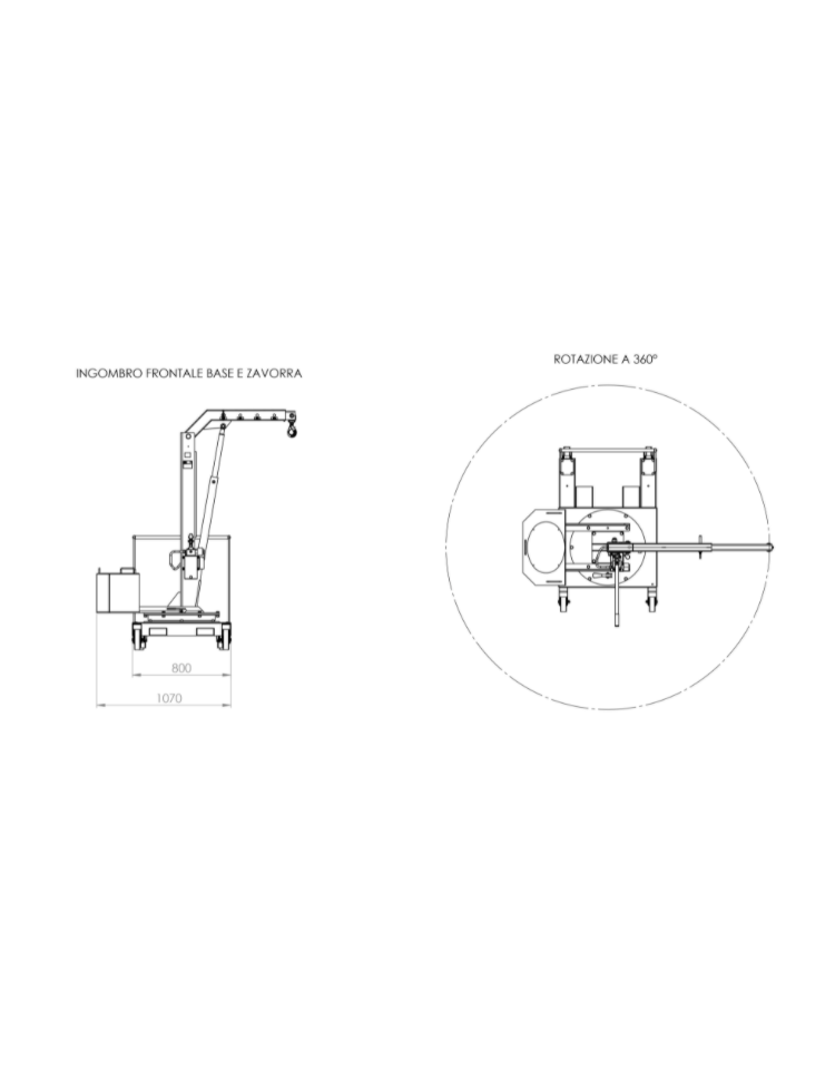 Gru contrappesata posizionata su ralla girevole a 360° che facilita il trasporto di stampi, attrezzature, ricambi e qualsiasi prodotto sulle macchine utensili e sui centri di lavoro dotati di protezioni perimetrali o aperture ridotte di difficile accesso (centri di lavoro, torni, frese, presse, elettroerosioni, macchine controllo 3D). Grazie all'ingombro frontale di soli 800 mm può essere utilizzata in corsie e spazi ristretti.
