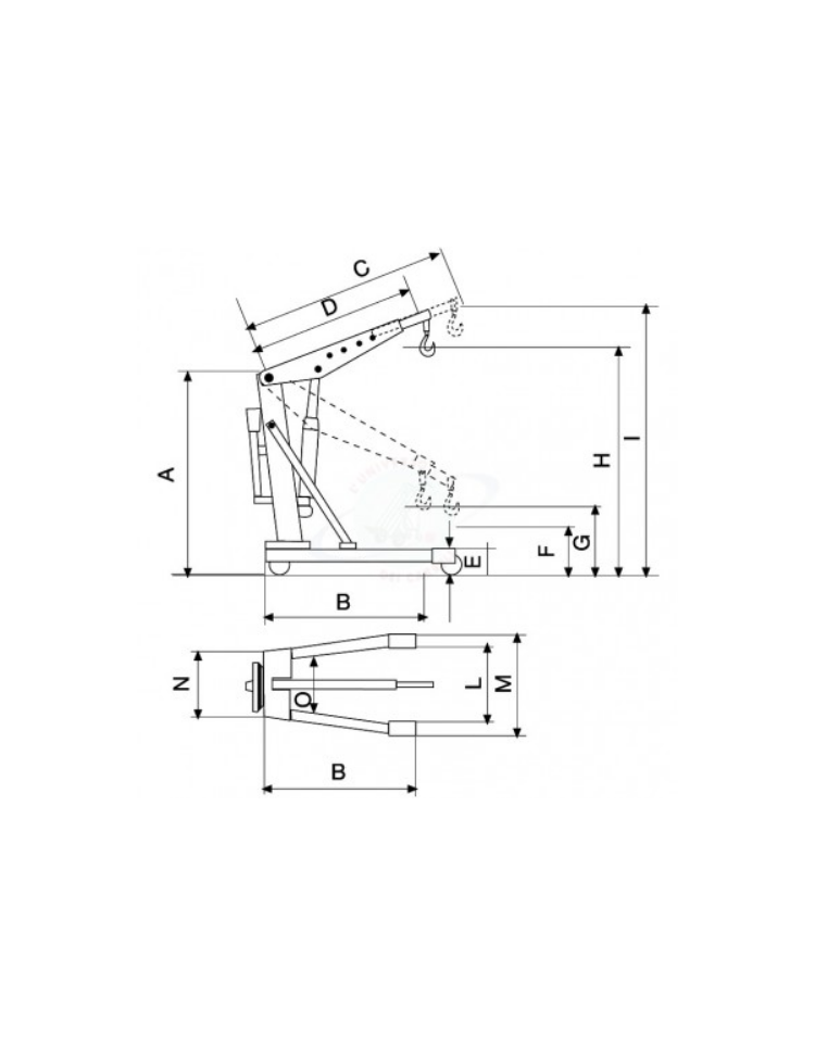 Carrello gru pieghevole, pompa doppio effetto, braccio allungabile in 4 posizioni - portata Kg. 1000