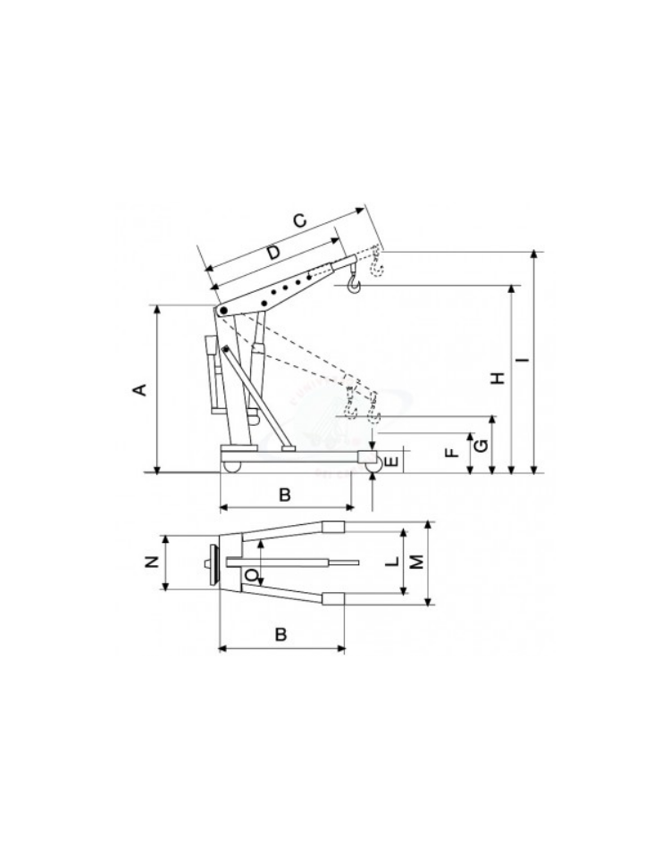 Carrello gru pieghevole, pompa doppio effetto, braccio allungabile in 4 posizioni - portata Kg 500