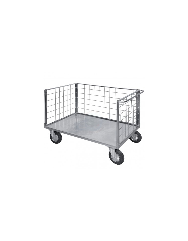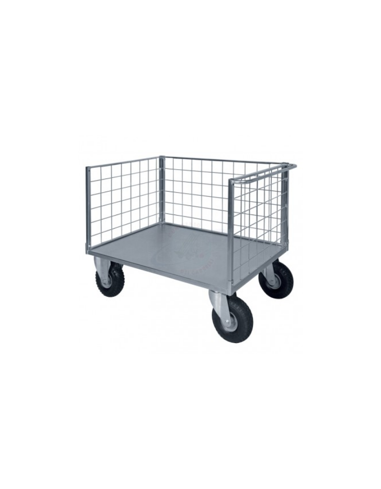 Carrello pianale 3 sponde in rete verniciata - 4 ruote antiforatura(2 fisse - 2 girevoli) 2 c/freno- dim. utili cm 77,5x115x60,5