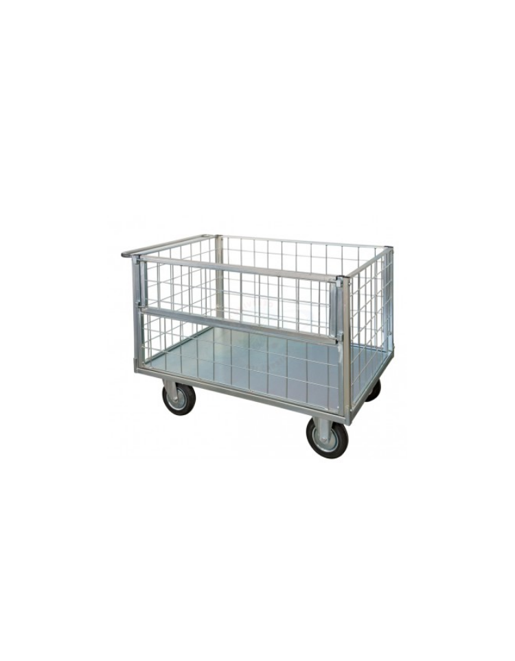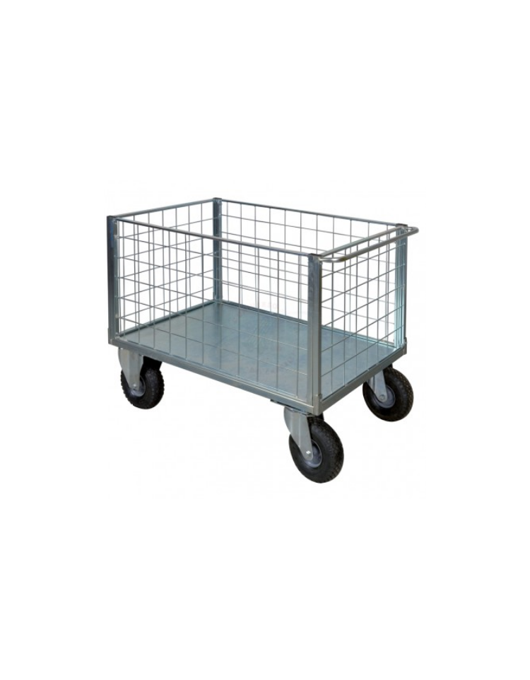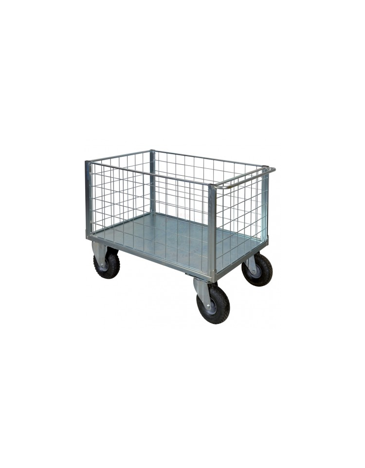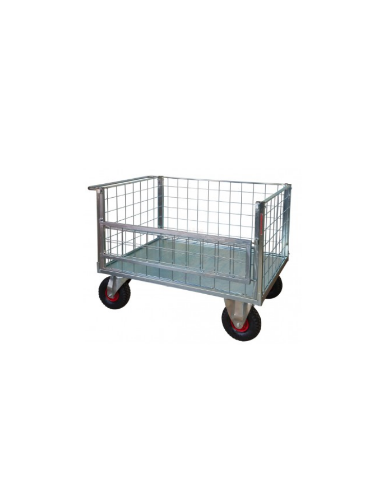 Carrello pianale verniciato, 4 sponde rete 1 ribaltabile - 4 ruote antiforatura(2 fisse-2 girevoli) - dim. utili cm 75x115x60,5h