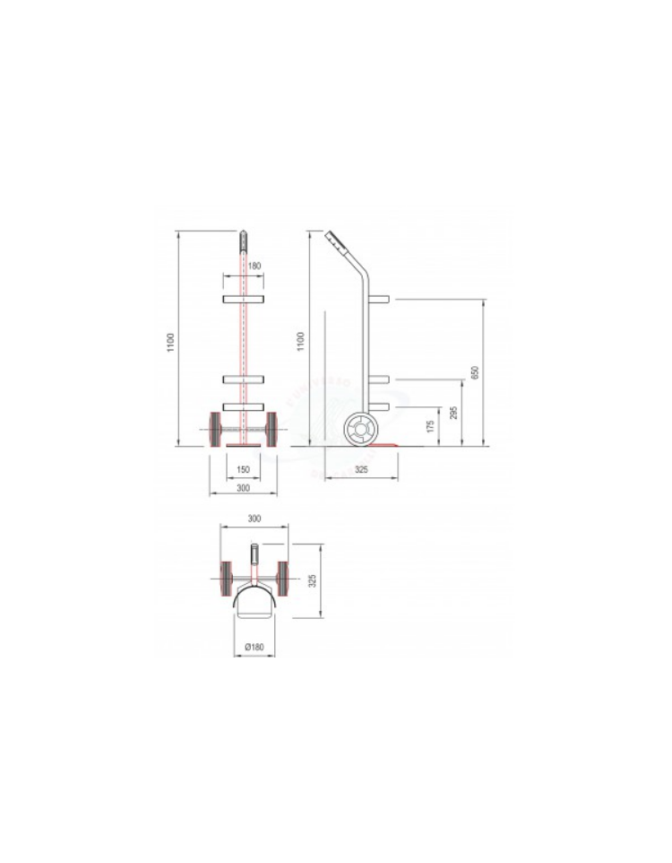 Carrello porta Bombola da Ø cm 16 lt. 5/7 - in acciaio inox AISI 304 - 2 ruote cm Ø15 in gomma antitraccia - cm 29x35x110h