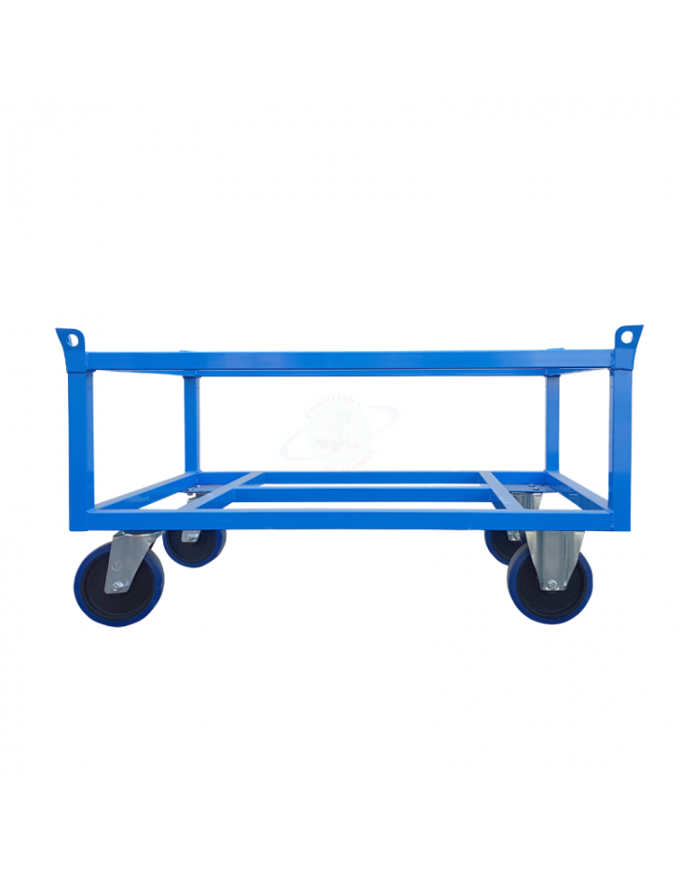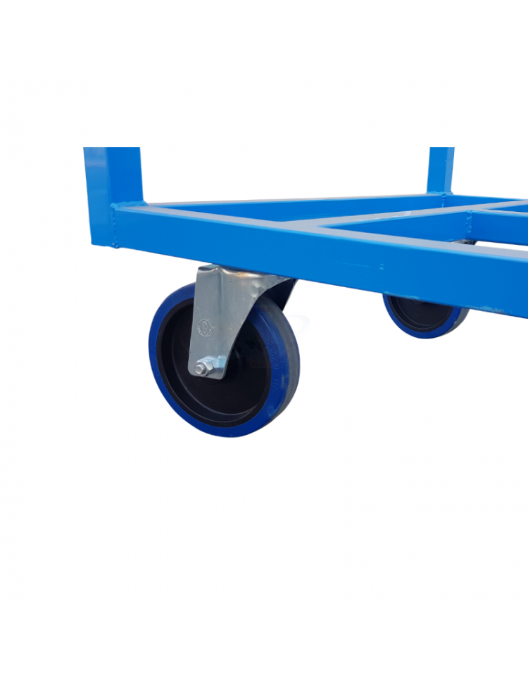 Carrello Porta Pallet Alto - 4 ruote in gomma elastica blu cm Ø20 (2 fisse + 2 girevoli) cm 125,5x85,5x71h