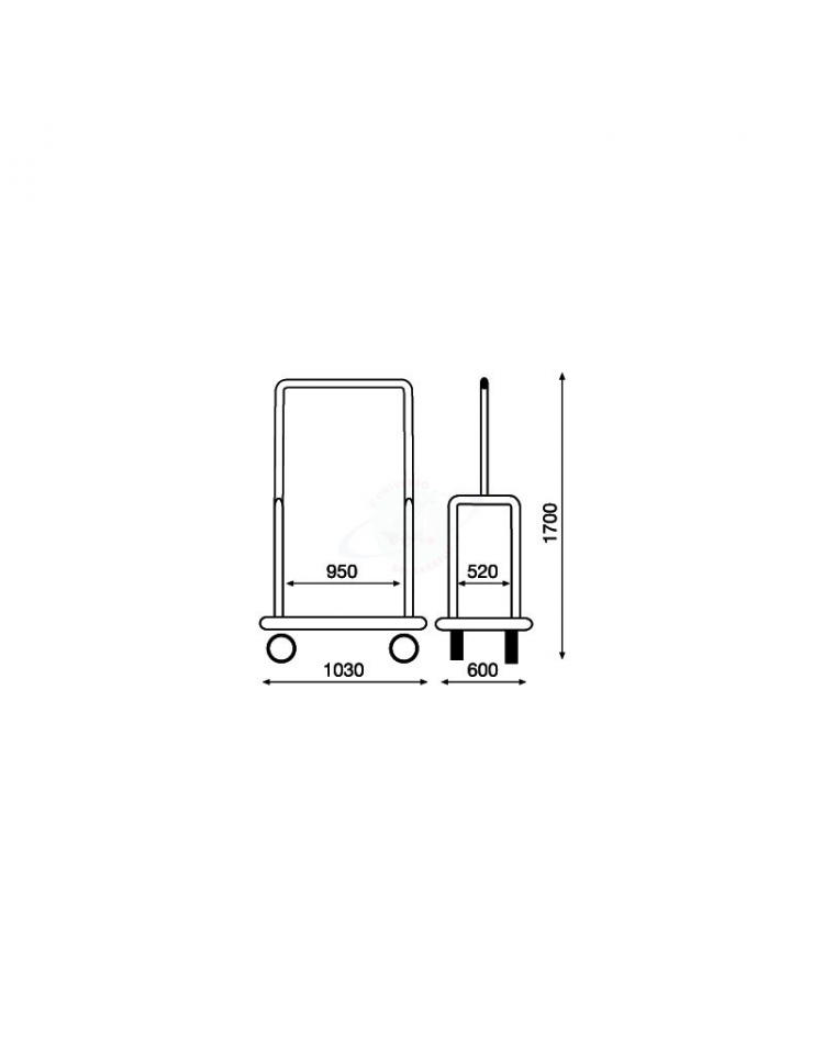 Carrello portabagagli "bus" in acciaio cromato, piano in moquette rossa - 4 ruote cm Ø 20 in gomma antitaglio - cm 64x103x170h
