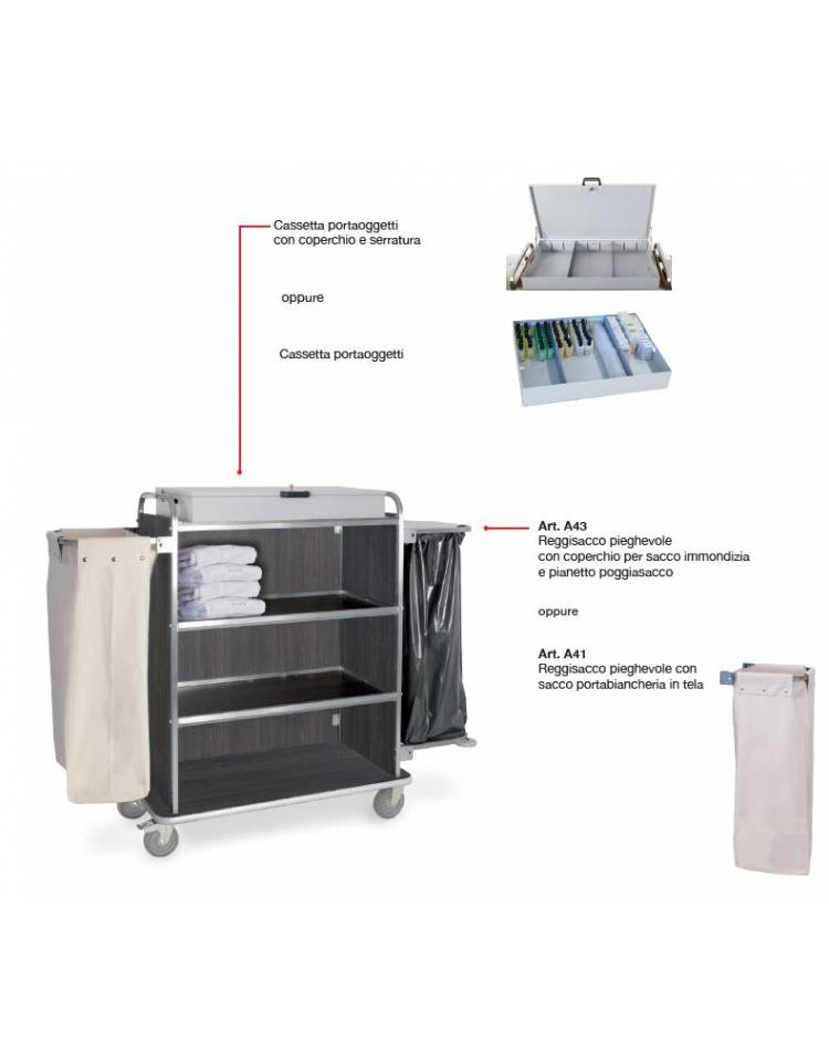 Carrello portabiancheria a 4 piani con N°2 Reggisacchi pieghevoli - Chiuso su 3 lati - cm 139x52x134h
