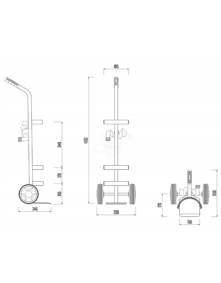 Carrello Portabombola singolo da lt 10/14 per bombola Ø cm 16 - 2 Ruote cm Ø 15 gommate - cm 29x35x110h