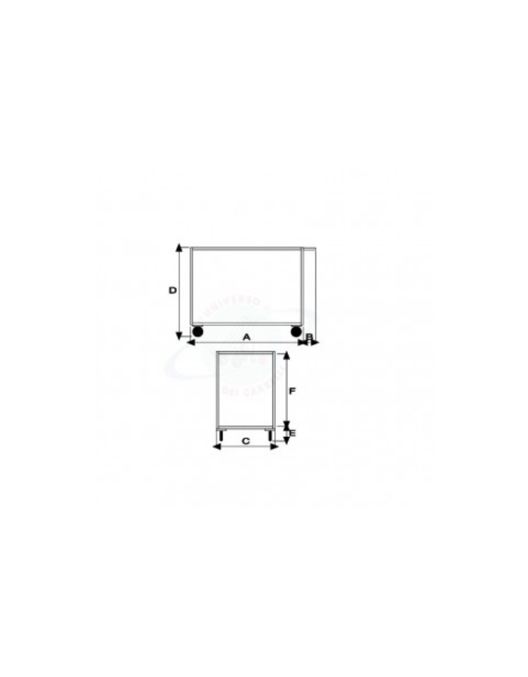 Carrello portatutto a 2 ripiani, lamiera 20/10 - 4 ruote ( 2 fisse - 2 girevoli con freno) Ø cm 14 gomma piena - piano cm 60x90