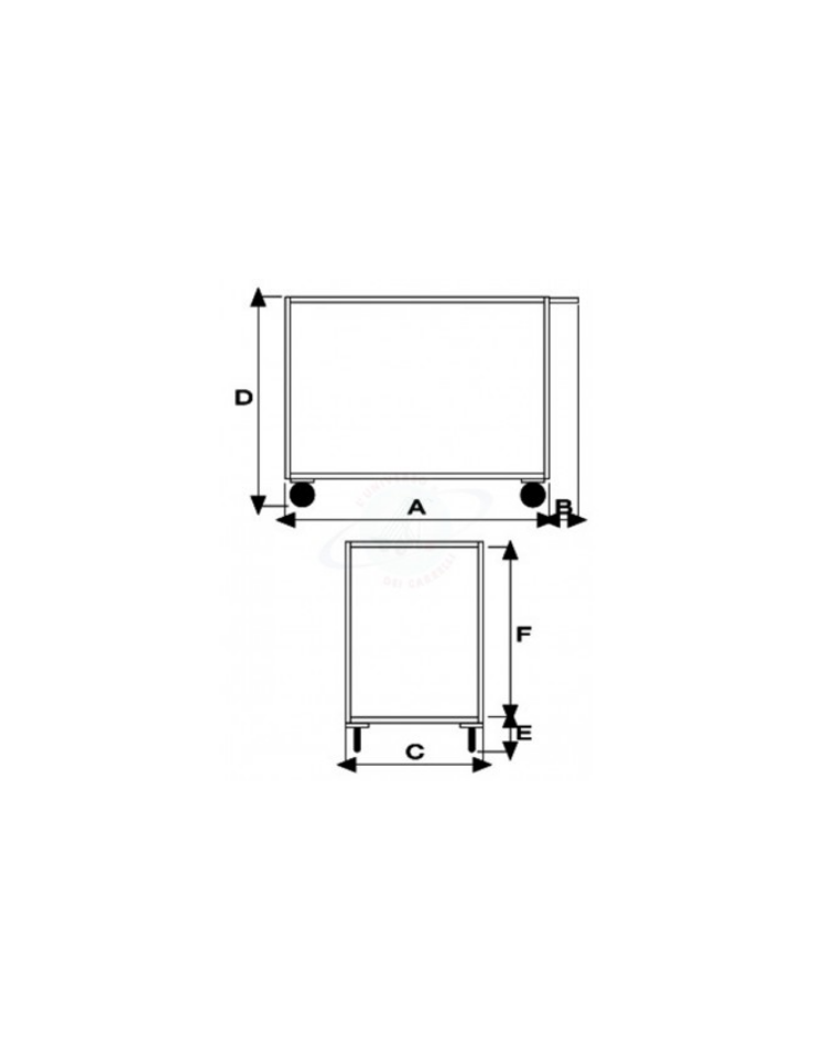 Carrello portatutto a 2 vasche, lamiera 15/10 - 4 ruote (2 fisse - 2 girevoli con freno ) gomma piena Ø cm 12,5 - piano cm 50x80