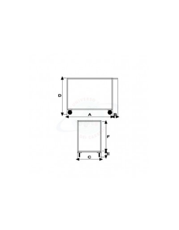 Carrello portatutto a 2 vasche, lamiera 20/10 - 4 ruote girevoli Ø cm 14 ( 2 con freno ) gomma piena - piano cm 60x90