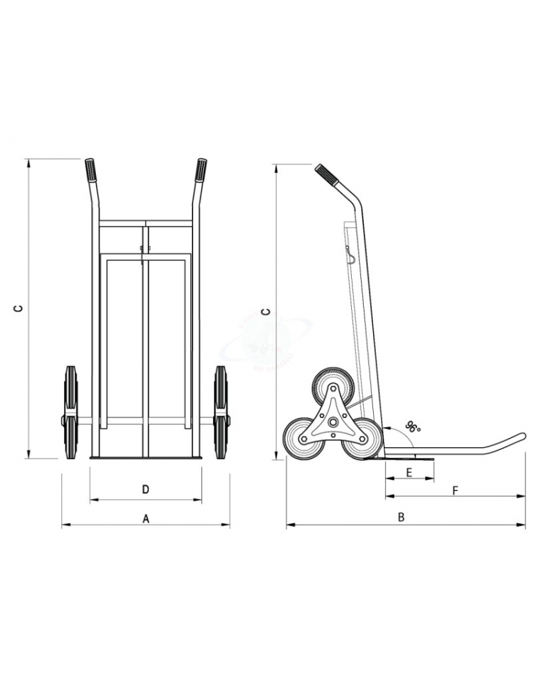 Carrello sviluppato per superare fastidiosi dislivelli (come scale) con doppia pedana apribile per avere un maggior spazio di carico. Ottima stabilità sia per uso domestico che per uso industriale, leggero e facile da usare.