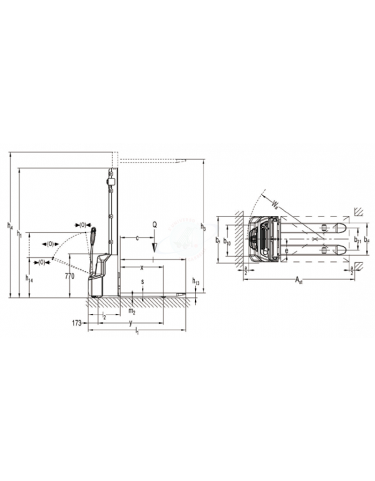 Carrello elevatore compatto, potente e robusto, ideale per lavorare in spazi ristretti. La larghezza ridotta (800 mm), permette grande manovrabilità.