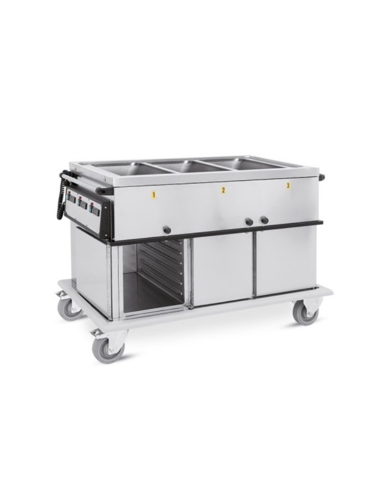 Carrello termico armadiato vasche separate c/coperchi N°3xGN1/1 - cm 134x72x96h