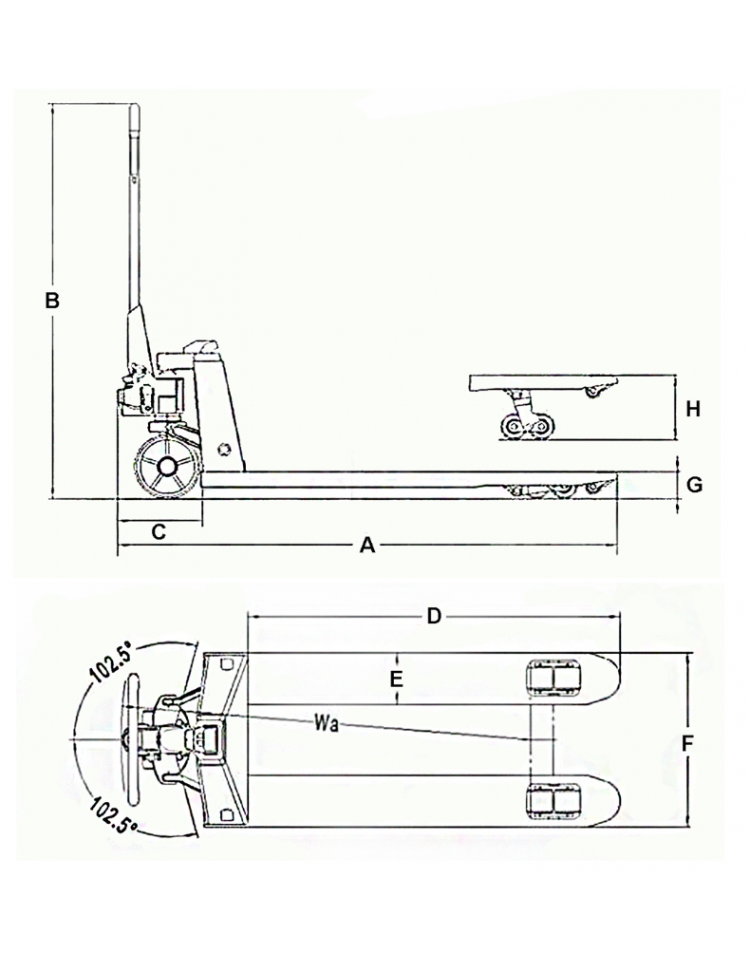 Carrello Transpallet con forche speciali da cm 150x54 - comando a leva 3 posizioni - Portata kg 1600