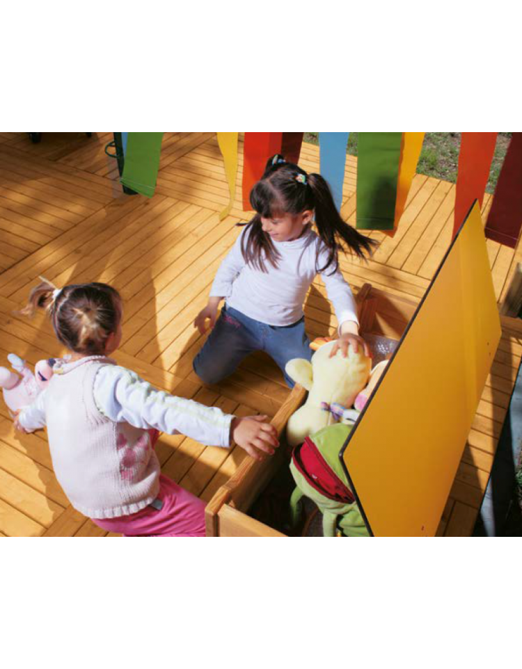 L’Aula verde è un luogo arredato e attrezzato per gruppi di bambini, una struttura flessibile e polifunzionale, che assicura la protezione dal vento e dal sole e si pone in continuità con le attività educative degli spazi interni.
