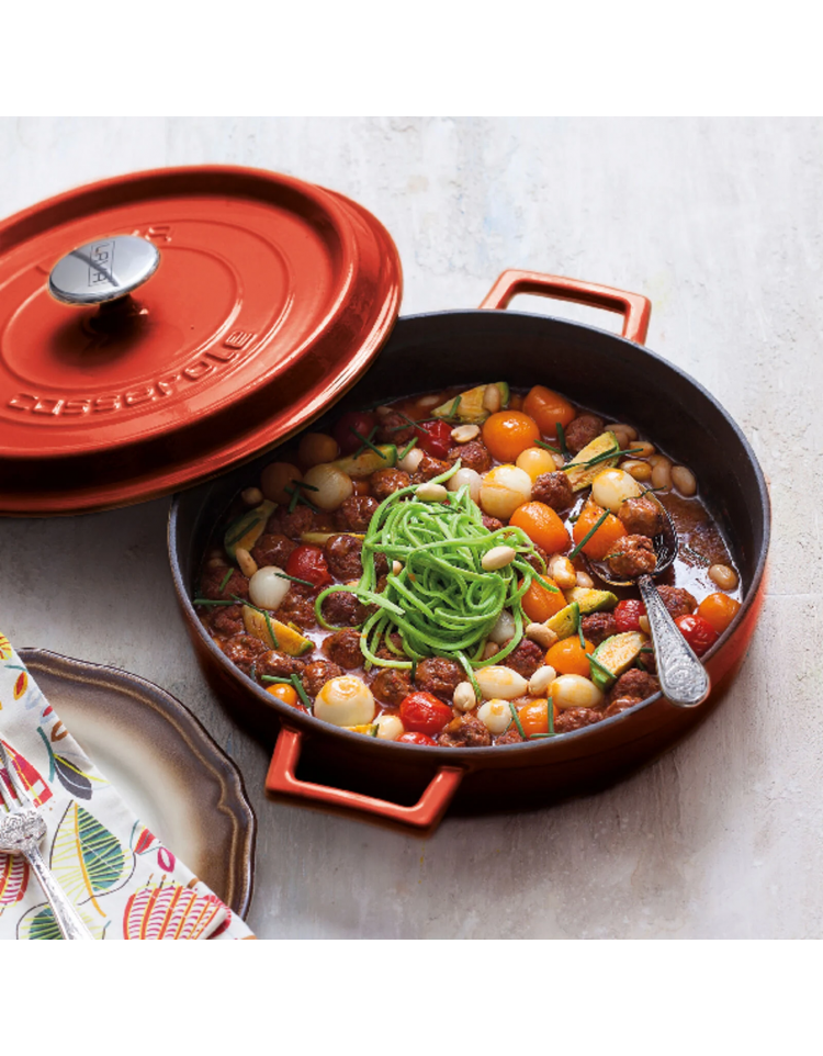 Casseruola bassa in ghisa con coperchio - colore rosso - 6-8 pozioni - Litri 5,7 - Diametro Ø cm 32 - Altezza cm 9
