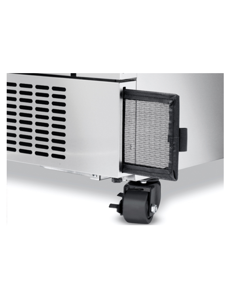 Dall’aspetto pulito ed essenziale, questo modello con piano in acciaio inox è perfetto per risparmiare spazio e offrire una postazione di lavoro refrigerata in qualsiasi cucina professionale. È un perfetto esempio di efficienza, modello a doppia temperatura (facilmente convertibile da chiller in freezer) cassetto singolo scorrevole con guide telescopiche adatto a 2 vaschette GN 1/1 (non incluse), termostato digitale, vano motore sul fondo, filtro condensatore facilmente rimovibile per una manutenzione e una pulizia agevoli e motore scorrevole facilmente estraibile per una manutenzione post-vendita gestibile. Per completare l’elenco delle caratteristiche di alto livello, è dotato di R290 ecologico e di 4 ruote piroettanti per un facile posizionamento.