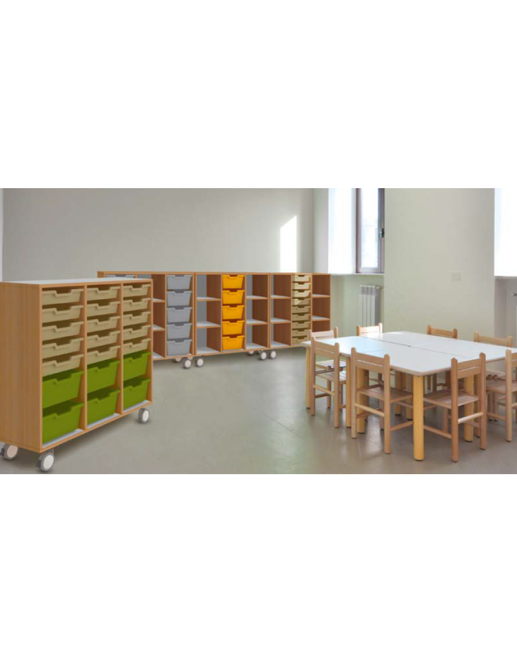 I cassetti in plastica per contenere e classificare oggetti di piccole come di grandi dimensioni, in ogni ambiente della scuola.
