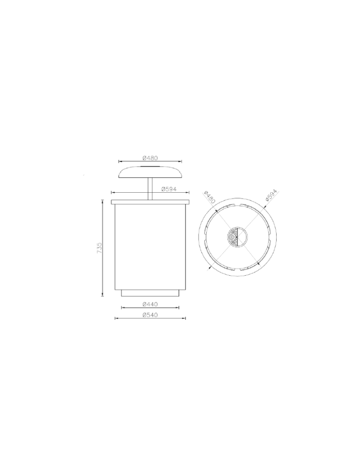 Cestino per la raccolta differenziata ideale per grandi strutture come aeroporti, centri commerciali, ecc… Struttura cilindrica esterna composta in lamiera d’acciaio liscia calandrata con fondo in lamiera d’acciaio che poggia su una base circolare in piatto calandrato. Il contenitore è diviso internamente in 4 settori tramite pannelli in lamiera d’acciaio saldati ad un sostegno centrale in tubo, ciascuna sezione è completa di reggi-sacco in trafilato d’acciaio. Il coperchio aprile in lamiera tagliata al laser e ribordata mediante tornitura viene finito con trattamenti di zincatura e verniciatura a liquido in 4 colori e scritta identificativa secondo la divisione per la raccolta differenziata. Tutta la viteria è in acciaio inox. Con coperchio di chiusura. Su richiesta può essere predisposto per il fissaggio al suolo.