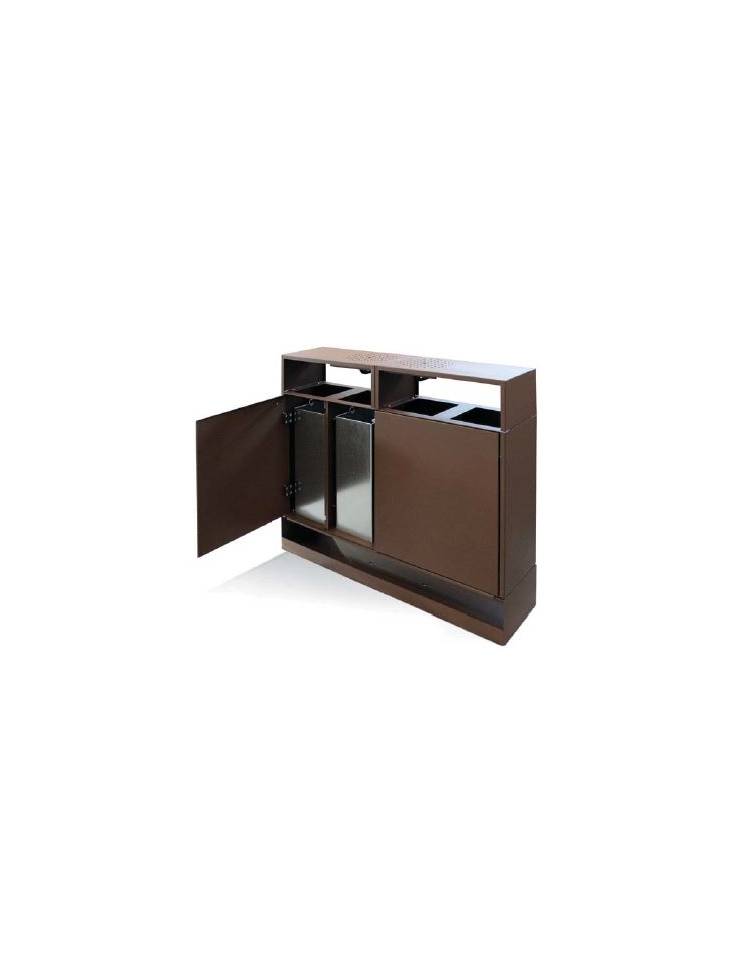 Cestino per raccolta differenziata a 3 settori, in acciaio zincato e verniciato, con copertura con o senza posacenere.