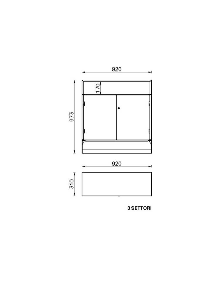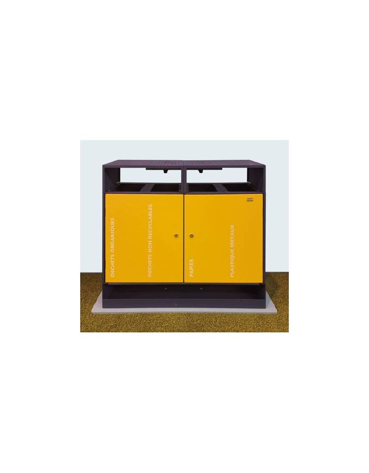 Cestino per raccolta differenziata a 3 settori da Lt 30x3 , in acciaio zincato e verniciato, con copertura - cm 92x31x97,3h