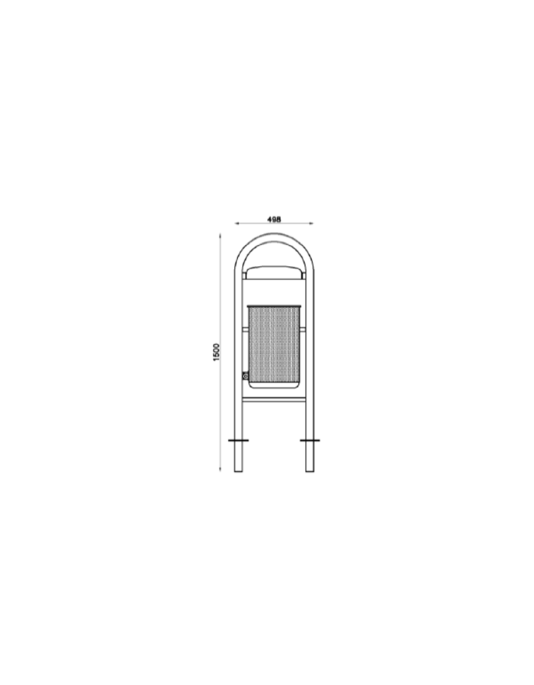 Contenitore a forma cilindrica, ottenuto dalla calandratura a freddo di lamiera forata prezincata, chiuso tramite elettrosaldatura. La parte superiore viene bordata con un anello elettrosaldato, mentre la parte inferiore viene chiusa con un fondello bombato e forato al centro per facilitare lo scolo di acqua meteorica o di periodica pulizia. Viene fornito completo di anello reggi-sacco in acciaio. Il contenitore è fissato tramite viti a un sostegno in tubolare di acciaio con prolungamento del tubo per essere inghisato. Tutte le parti metalliche sono zincate e verniciate a polveri poliestere termoindurenti. La viteria è in acciaio inox.
