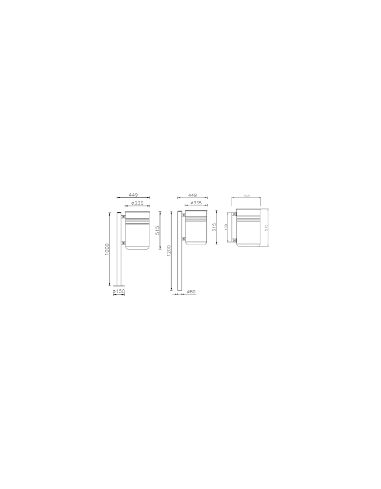 Contenitore a forma cilindrica con nervature, ottenuto dalla calandratura a freddo di lamiera, chiuso tramite elettrosaldatura. La parte superiore viene bordata con un anello elettrosaldato ottenuto da tornitura in lastra, mentre la parte inferiore viene chiusa con un fondello opportunamente forato per l’eventuale scolo di acqua meteorica o di periodica pulizia. Viene fornito completo di reggisacco in acciaio incernierato sul bordo interno superiore dei contenitori e libero di ruotare per facilitare l’inserimento del sacchetto. Il contenitore è sostenuto da un tubolare in acciaio chiuso nella parte superiore con un tappo nero in PVC. Tutte le parti metalliche sono zincate e verniciate a polveri poliestere termoindurenti nelle diverse colorazioni RAL. La viteria è in acciaio inox.