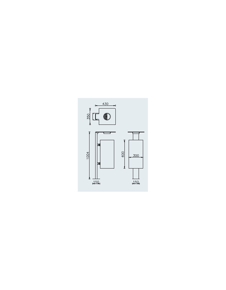 Il contenitore è fissato tramite viti a un sostegno in tubolare di acciaio fornito di piastra base per il fissaggio al suolo. All’estremità superiore del tubolare è fissato un coperchio in lamiera, completo di posacenere.