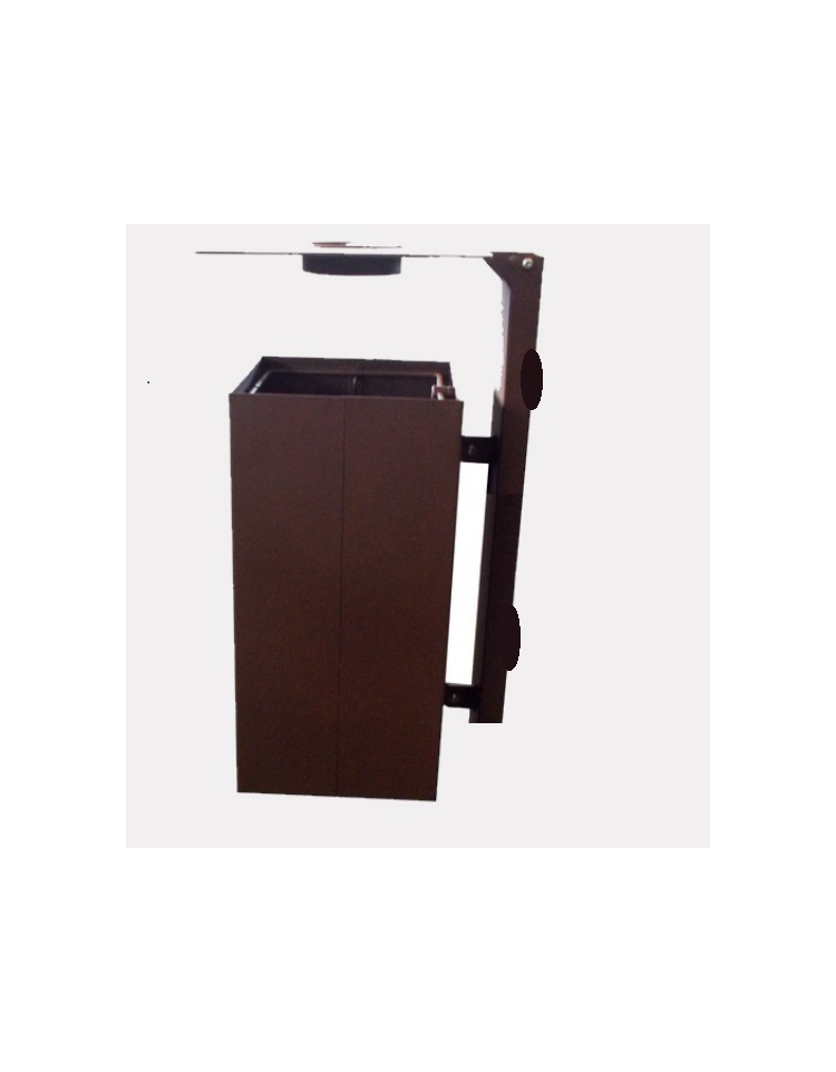Il contenitore è fissato tramite viti a un sostegno in tubolare di acciaio fornito di piastra base per il fissaggio al muro. All’estremità superiore del tubolare è fissato un coperchio in lamiera, completo di posacenere.