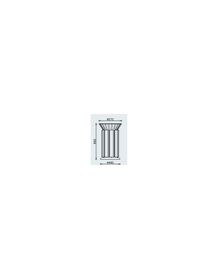 Cestino costituito da 20 raggi in piatto di acciaio 25x4 mm opportunamente piegati e uniti con saldatura a tre anelli in piatto di acciaio 25x4 mm nella parte inferiore e ad un anello in tondino di acciaio diametro 10 mm sulla parte superiore. La base è in metallo ottenuto dalla tornitura in lastra di lamiera spessore 20/10. Il cestino è fornito di contenitore interno a forma cilindrica Ø355 e H.655mm ottenuto dalla calandratura a freddo di lamiera spessore 10/10, chiuso tramite elettrosaldatura. La parte superiore viene bordata con un anello elettrosaldato ottenuto da tornitura in lastra, mentre la parte inferiore viene chiusa con un fondello opportunamente forato per l’eventuale scolo di acqua meteorica o di periodica pulizia. Tutte le parti metalliche sono zincate e verniciate a polveri poliestere termoindurente disponibili in diverse colorazioni RAL. La viteria è in acciaio inox. Il cestino può essere fornito anche a mezzaluna per il fissaggio a muro o rivestito con doghe in legno di pino. Molto robusto è adatto a zone di grande frequentazione. Facile da svuotare e pulire.