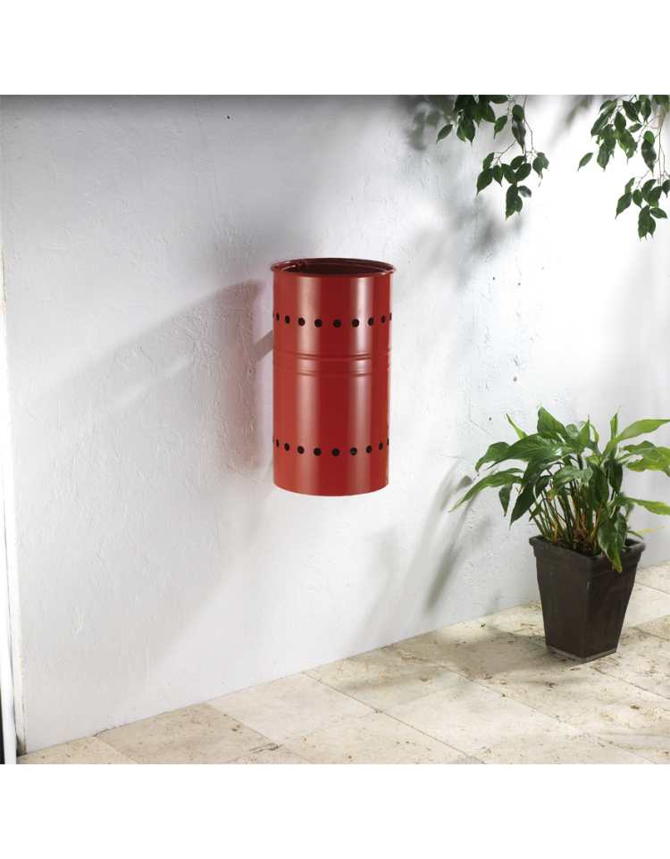 Cestino portarifiuti in acciaio zincato e verniciato, di forma cilindrica per il fissaggio al muro - cm 49x37