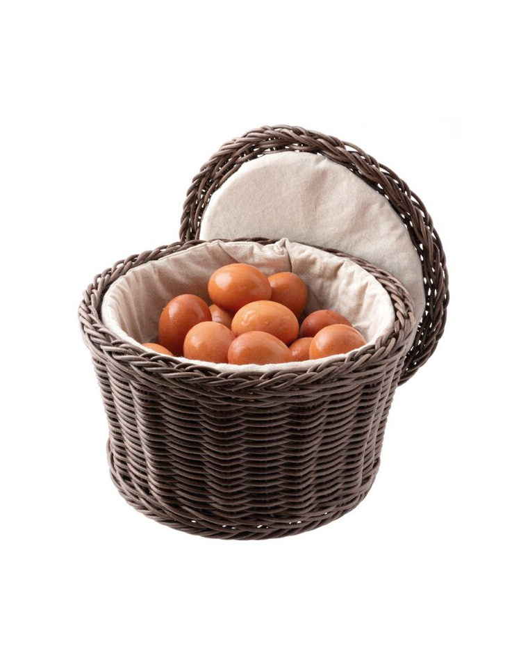 Cesto uova in polipropilene con imbottitura in tessuto - colore marrone - portata circa 20 uova - Diametro cm 26 - Altezza cm 17