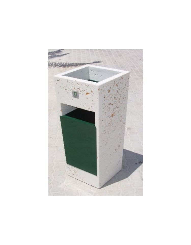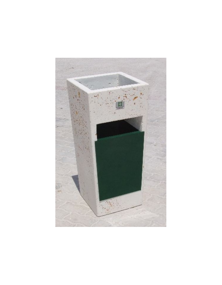 CESTONE GETTACARTE TRAPEZOIDALE IN CALCESTRUZZO COLORE GRIGIO TRAVERTINO - CON POSACENERE E CESTELLO METALLO - CM 41x41x90H