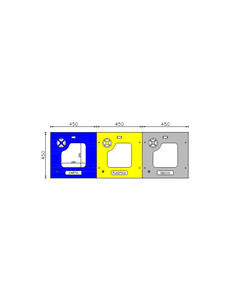 Cestone per la raccolta differenziata a 3 settori in acciaio con doghe in legno di pino - cm 45x45x100h cad.