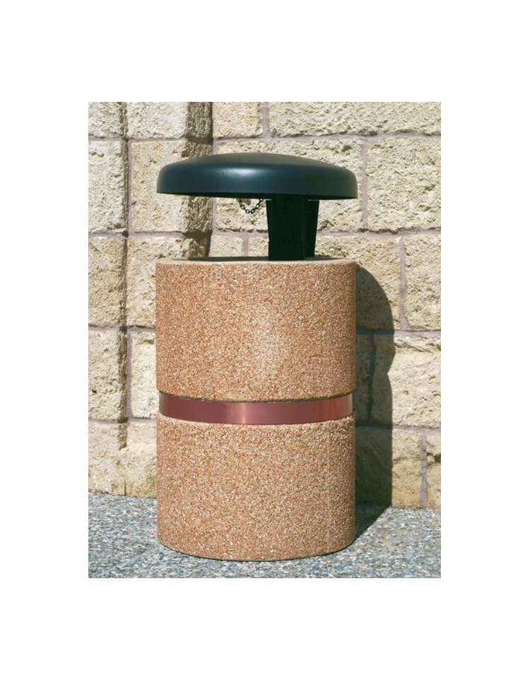 Cestone portarifiuti in graniglia di marmo sabbiato colore a scelta - con coperchio a ribalta e reggisacco - cm Ø50x100h - CAM