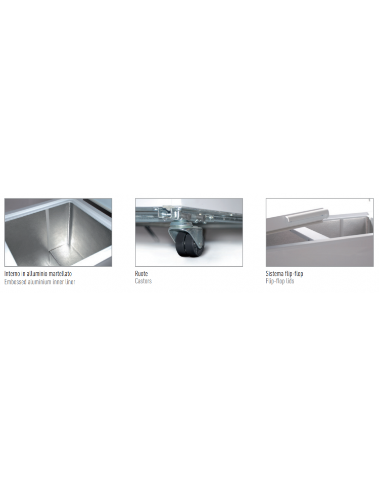 Congelatore a pozzo con porta cieca sistema flip-flop e interno in alluminio martellato- statico -23°/-13°C - cm 155,5x63x87,5h