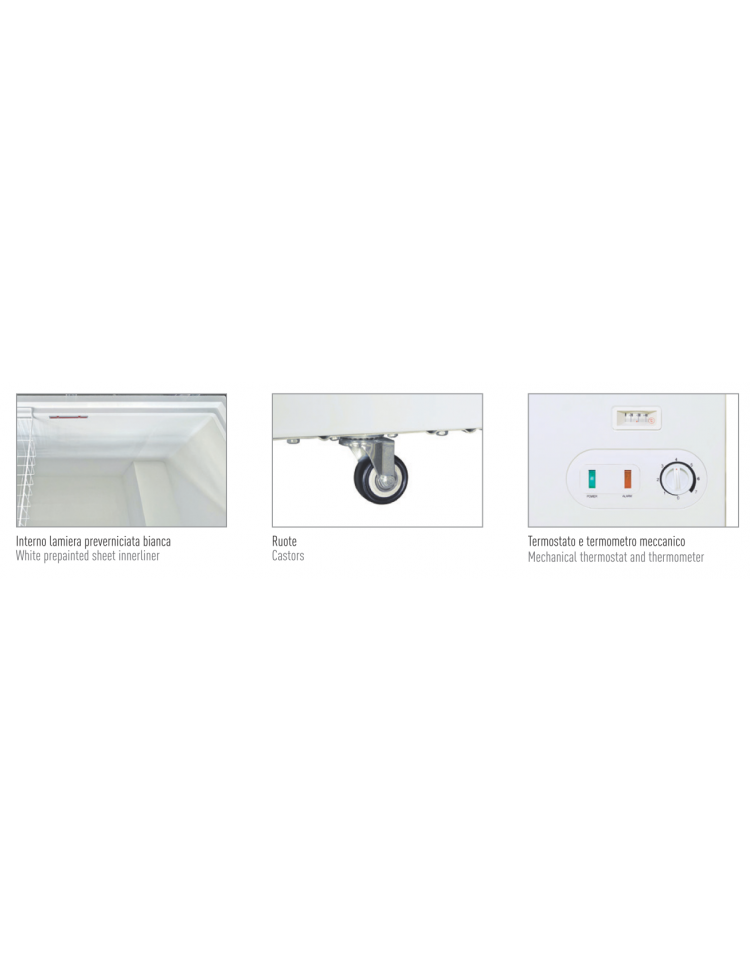 Congelatore a pozzo statico porta cieca sistema flip-flop - lt. 304 lordi - temperatura -13°C/-23°C - cm 109x68x89,5h