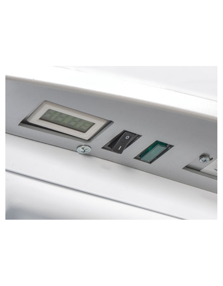Congelatore verticale da 300L di colore bianco con pannello pubblicitario e maniglia esterna rettangolare. Equipaggiato con porta in vetro riscaldata con doppio vetro temperato di sicurezza, sistema di raffreddamento statico con ripiani evaporatori fissi, serratura, porta autochiudente, luce interna orizzontale a LED con interruttore indipendente, termostato meccanico e termometro digitale. Il modelloì è stato progettato per essere utilizzato in molteplici modi, garantendo sempre una corretta conservazione degli alimenti per una corretta esposizione e apprezzamento dei prodotti all’interno.